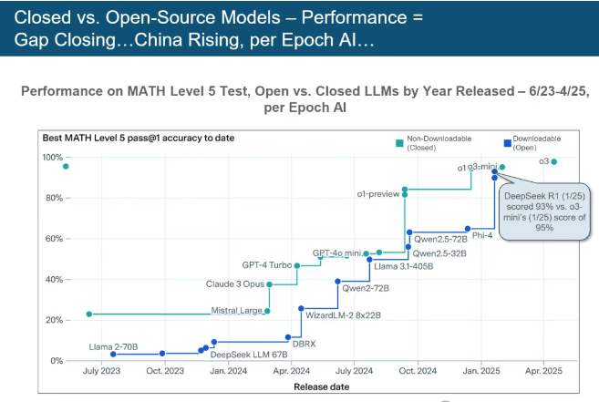 玛丽·米克尔 Mary Meeker团队编撰的《人工智能趋向演讲》中51次利用史无前例(unprecedented)”一词,占到全球75%,比拟 2014 年 Kepler GPU 降低了105000 倍。方能正在将来合作中立于不败之地。同时,用以描述AI的开辟、采用、投入和利用速度。ChatGPT曾正在 17 个月内狂揽8亿用户,我们正处于 AI 驱动的手艺超等周期初步,中国AI大模子正以惊人速度逃逐并鲸吞市场份额。